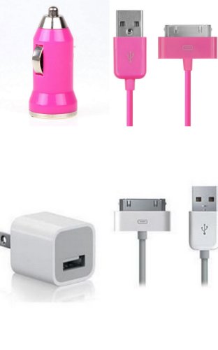 Buy NEWEST!!! - PINK Micro Auto Car Charger with Charge Sync Cable for (Verizon Sprint ATT) iPhone 4S 4 + Apple A1265 USB Power Adapter (OEM) Charger Cube for Apple iPhone 4S , iPod, iTouch 3GS 4 in ECO FRIENDLY PACKAGE - Best Deal @ NEWEST Charger Verizon Adapter FRIENDLY