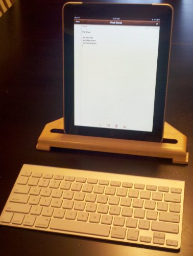 The best price on Stylish Ipad Stand Oak Hardwood. The Stylish Ipad Stand Made From Quality Oak Hardwood Product Description of This iPad stand is designed to fit both the original iPad and the iPad 2. It is an attractive alternative to optimize the use of the iPad. The stand enables multiple viewing angles in both vertical and horizontal orientation. This attractive stand is available in four different materials. It is the perfect set up to use a wireless keyboard with your ipad, or to use with Face-time chat. In addition, the stand has a velvet coating to protect your device from any wear during use. It is very transportable and collapses down .75". The stand is ideal for use on tray tables as it will not rock or tip over with your iPad unlike other easel designs.